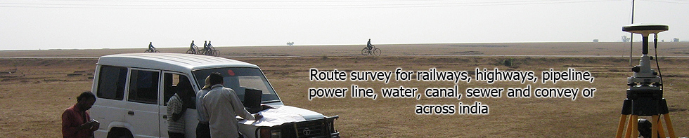 B. Route Survey: Route surveys are most commonly used for streams channels highways, railways, canals, power transmission lines, pipelines and other utilities. In general, route surveys consist of determining ground configuration and the location of objects within and Along the proposed route, establishing the linear or curvilinear alignment of the route and determining volumes of earthwork required for construction. We are specialized in Transport system like Monorail, Metro rail, MRTS, LRTS and Gauge conversion, New line, Doubling in Rail network, and BRTS, HCBS, NH, SH and Rural Roads in Road network for DPR (Detailed Project Report) and FLS (Final Location Survey).